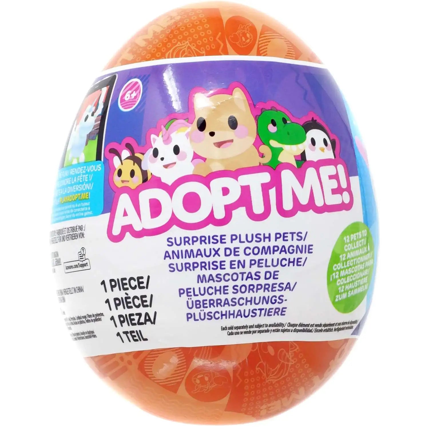 Discover the excitement of Adopt Me! Surprise Plush Pets Series 4, featuring 12 unique pets to collect. Each surprise egg is ready to hatch, revealing an adorable plush companion along with a redeemable virtual item code for use in the Adopt Me game. Measuring 12 cm in height, these collectible pets combine physical play with virtual interaction, perfect for fans seeking to expand their collection both offline and online.